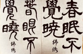 右側の作品は,篆書【花開玉楼春huā kāi yùlóu chūn】の臨書習作です。